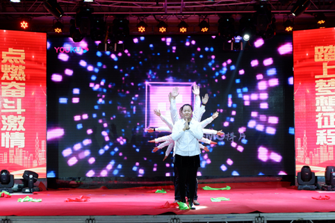 在聯(lián)歡會的現(xiàn)場,華麗舞臺燈光璀璨,背景制作喜氣祥和,一派喜迎新春的美好盛況,那一首首悅耳動聽的歌曲,那一段段優(yōu)美豪放的舞蹈,那一個個風(fēng)趣搞笑的互動小品.......在舞臺上傾情巨獻(xiàn),精彩紛呈,掌聲與喝彩此起彼伏,現(xiàn)場氣氛熱烈、喜氣、祥和,凱為人的魅力與風(fēng)采在這一刻光芒四射,凱為人的才藝在這一刻八仙過海??!