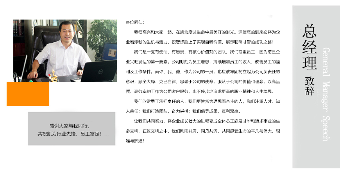 感謝大家與我同行,共祝凱為行業(yè)先鋒,員工富足!